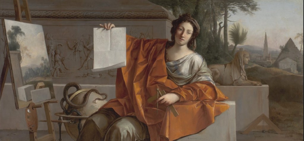 «Allégorie de la Géométrie» [1649] de Laurent de la Hyre encendió mi visión de un gobierno ideal: una geometría de virtudes, donde reina el equilibrio y el orden se despliega con perfecta simetría. La justicia, la templanza y la sabiduría forman el trígono de la armonía, cuya interacción da forma a un gobierno tan preciso y continuo como las líneas del compás, un testimonio perdurable del poder de la virtud. Un gobierno virtuoso, al igual que las leyes eternas de la geometría, puede mantenerse como un faro de estabilidad y verdad perdurable.