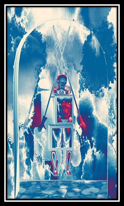 En un mundo donde a menudo exigimos certeza y control, nos encontramos fragmentados y atrapados en cajas que nosotros mismos hemos creado, incapaces de abrazar la totalidad de nuestra existencia. La imagen ante ustedes captura esta tensión: un cuerpo suspendido en un delicado andamiaje, expuesto pero atado, vulnerable pero distante. El rojo carmesí que pulsa a través de la radiografía de esta figura refleja la intensidad emocional de nuestros conflictos internos: creencias irracionales, soledad y la distorsión de nuestros propios sentimientos. Aquí, encontramos un cuerpo que está presente y ausente al mismo tiempo, como el yo que intentamos controlar a través de dogmas rígidos, convicciones infundadas o la falsa seguridad de suposiciones no cuestionadas.