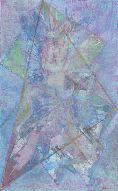 Mi Serie Triangulación 2006–08 profundiza en preguntas persistentes sobre la perspectiva, sintetizando conceptos de espacio pictórico e infinitud—una indagación que ha marcado mi práctica a lo largo de los años. A través de la abstracción pictórica y la plasticidad, busco expresar, tanto en forma como en contenido, un arte que trascienda el mundo material de los signos. Mis pinturas aspiran a lo infinito—al misterio y la poesía inherentes al drama interior de cada individuo.
